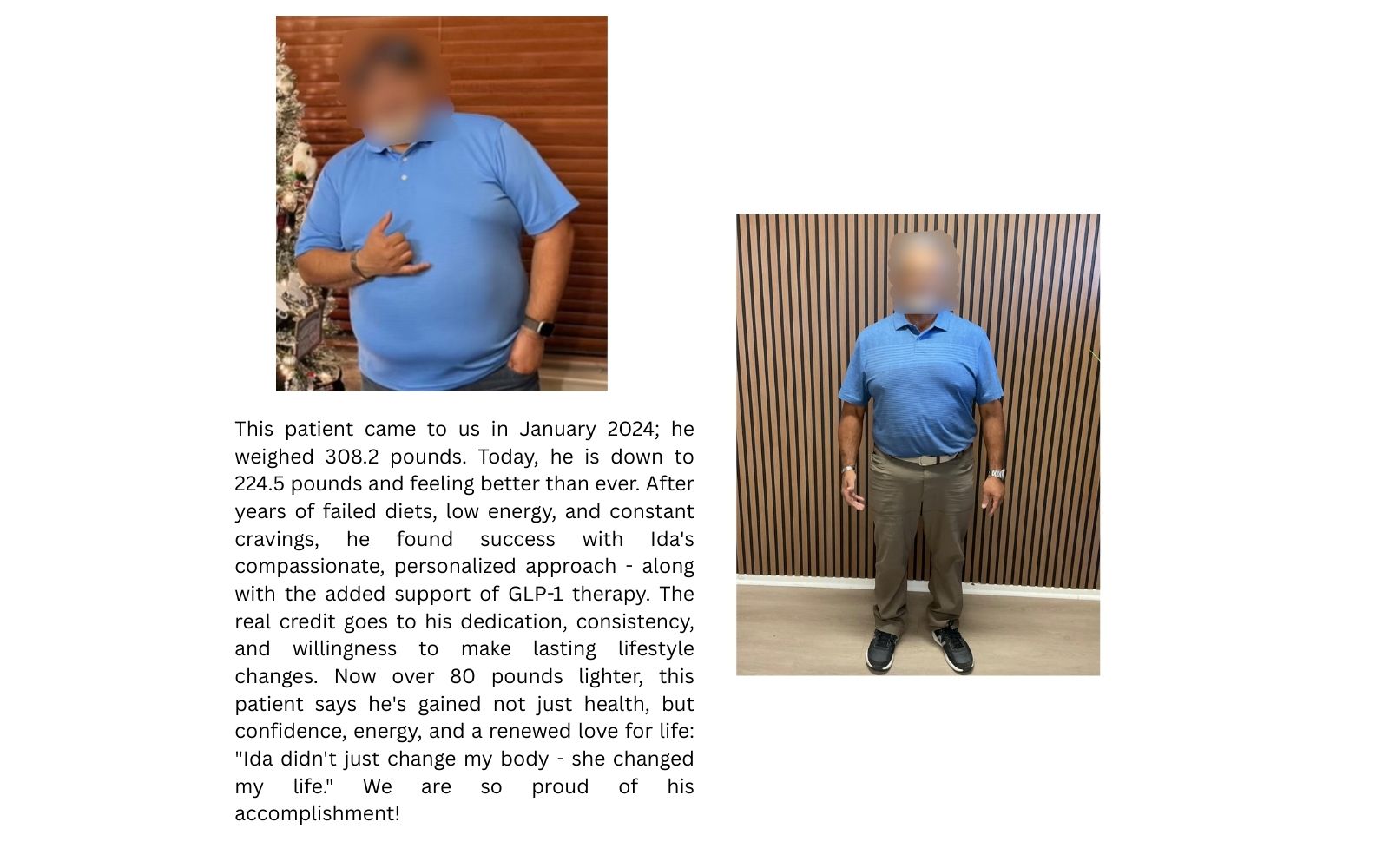Medical weight loss plans are tailored to individual goals. Each individual will receive body composition analysis with the InBody 570 analyzer, laboratory orders and interpretation, diet and exercise recommendations, prescription management, monitoring, and follow up.